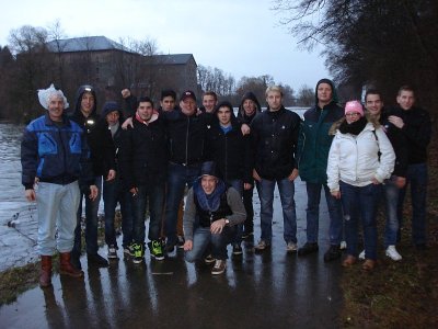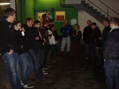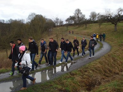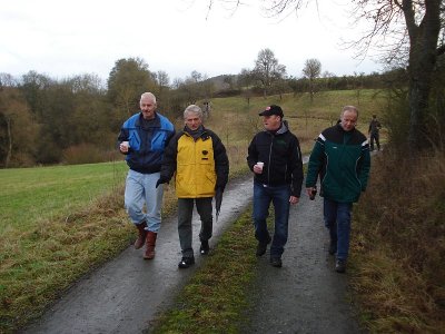 Der traditionelle Wandertag der FSG Gräveneck/Seelbach/Falkenbach am 27.12.2012 war davon geprägt, dass sich erstmals eine junge, hübsche, stimmgewaltige Frau den FSG’lern anschloss. Mona Heckelmann, die in ihrer Freizeit als Sängerin bei „WESTWIND“ auftritt und mit dem FSG-Neuzugang Rene Perina befreundet ist, hatte den Mut mitzulaufen, und fügte sich nahtlos in die Truppe ein. So starteten 19 FSG’ler –unter ihnen auch ein Überraschungsgast aus Kubach, der Ex-Trainer Gerald Götz– an der Bushaltestelle in Gräveneck gut gelaunt und bei zunächst trockenem Wetter. Durch Feld, Flur und Wald lief man nach Fürfurt in die „Lahntalschänke“. In der urigen Gaststätte von Willi Schmidt wärmte man sich auf und freute sich, dass der sympathische Bootsverleiher der gesamten Wandertruppe einen Schnaps spendierte.