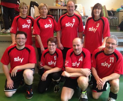 Hier gingen insgesamt 6 Mannschaften in 2 Guppen an den Start. Wir hatten es in unserer Gruppe mit den Mannschaften aus Nauheim und der Uni Koblenz zu tun. Gespielt wurde 2 x 5 Minuten. Gegen Nauheim konnten wir uns im 1. Satz mit 8 :7 durchsetzen und der 2. Satz endete 9 : 9. Klarer war die Angelegenheit gegen die Uni Koblenz. Hier konnten wir beide Sätze für uns entscheiden (14 : 6 und 13 : 6). Da Nauheim gegen Koblenz nur einen Satz gewinnen konnte und der 2. Satz 9 : 9 endete, standen wir als Gruppensieger fest. Im Halbfinale mussten wir gegen den späteren Sieger, die junge Mannschaft aus Lautenbrücken antreten und verloren den 1. Satz mit 8 : 12. Im 2. Satz konnten wir ein 9 : 9 erkämpfen, dennoch reichte es nicht für das Endspiel. Am Ende belegten wir einen undankbaren, aber auf Grund des großen Altersunterschiedesder Mannschaften einen sehr guten Platz 3 bei den Männern.