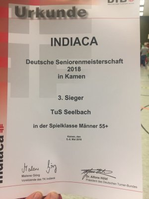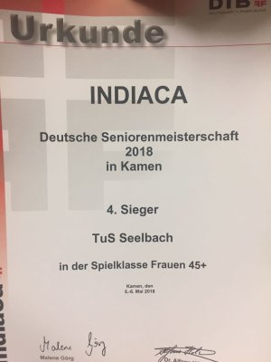 Erfreulich verlief für die Seelbacher Mannschaften die Teilnahme an den Deutschen Meisterschaften im Indiaca, die am 5. und 6. Mai in Kamen (Westfalen), stattfanden. Nach der holprigen Vorbereitung, viele Spieler hatten mit Verletzungen zu kämpfen, die sich bis zu den Meisterschaften hinzogen, kann man die erreichten Platzierungen durchaus als Erfolg verzeichnen.