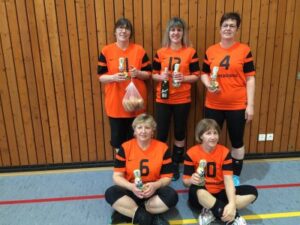 Unsere Frauen zeigten sich in guter Verfassung und konnten sich über den 2. Platz freuen. Gestartet wurde bei den Damen in 2 Dreiergruppen. Unsere Damen spielten gegen Udenheim und Ober-Olm und konnten 3 Sätze für sich entscheiden. Lediglich gegen Ober-Olm gab man einen Satz ab. Am Ende waren sie Gruppenerster und mussten gegen den 1. der anderen Gruppe zum Finale antreten. Hier mussten sie sich in 2 Sätzen nur knapp gegen Edenkoben geschlagen geben. Dennoch ein achtbarer Erfolg.