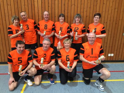 Nicht viel besser lief es für unsere beiden Mixed-Mannschaften. Insgesamt gingen 9 Teams an den Start und es wurde in 3 Dreiergruppen gespielt. Beide Seelbacher Mannschaften spielten in verschiedenen Gruppen, aber beide Mannschaften bekamen aber an diesem Tag kein Bein auf den Boden und wurden jeweils Gruppenletzter. In den Spielen um Platz 7 – 9 trafen wir auf unsere Sportfreunde aus Großauheim, mit denen uns eine gute Freundschaft verbindet. Im ersten Spiel trafen beide Seelbacher Teams aufeinander und jeder gewann ein Spiel. Doch schon hier merkte man, dass die Luft raus war und der anstrengende Tag doch deutlich seine Spuren hinterlassen hatte. Auch gegen Großauheim sahen beide Seelbacher Mannschaften schlecht aus und so konnten sich unsere Freunde aus der Nähe von Hanau über Platz 6 freuen und wir mussten mit den letzten beiden Plätzen vorlieb nehmen.