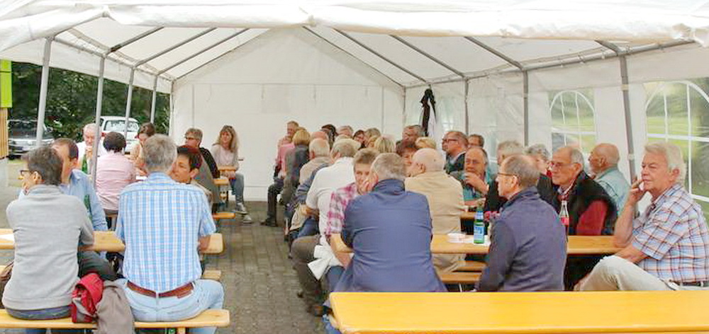 Am Sonntag-Morgen erfolgte der akademische Teil des Jubiläums. Nach der Begrüßung durch Vorstand Gerhard “HUGO” Weil folgte der Rückblick auf Planung, Entstehung und Ausführung der Bauarbeiten. Der Ehrenvorsitzende des TuS, Jürgen Schäfer, dokumentierte per Bild- und Textmaterial im Sportheim anschaulich die Geschehnisse der damaligen Zeit. Abgerundet wurde diese Dokumentation durch eine ausdrucksstarke Rede des Ehrenvorsitzenden vor versammelter Gästeschar, in der sich auch Bürgermeister Arnold Richard Lenz und Hildegard Stein (stv. Vorsitzende Turngau Mittellahn und stv. Sportkreisvorsitzende) eingereiht hatten. Thomas Zanger setzte anschließend die Ausführungen von Jürgen Schäfer fort und blickte auf die 25 Jahre nach Fertigstellung zurück. Er berichtete von zahlreichen Renovierungen und Instandsetzungen im Haus selbst, von ungebetenen Gästen am Sportheim (“Diebe und Wildschweine”) , sowie von den Weiterentwicklungen rund um das Haus bis zur Entstehung der neuen Spielfläche des Sportplatzes. Ein besonderer Dank von ihm wurde an Eugen Waronin ausgesprochen, der über 16 Jahre lang der “gute Geist” des Sportheimes war.
