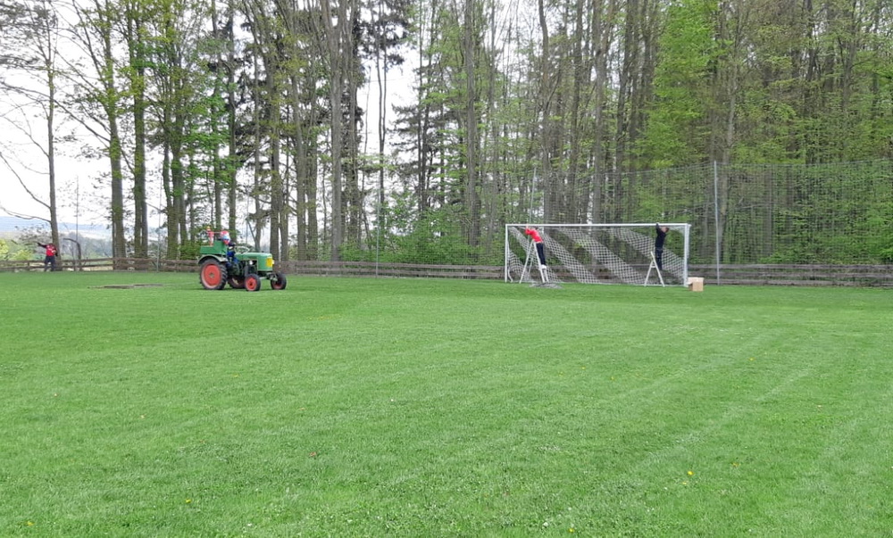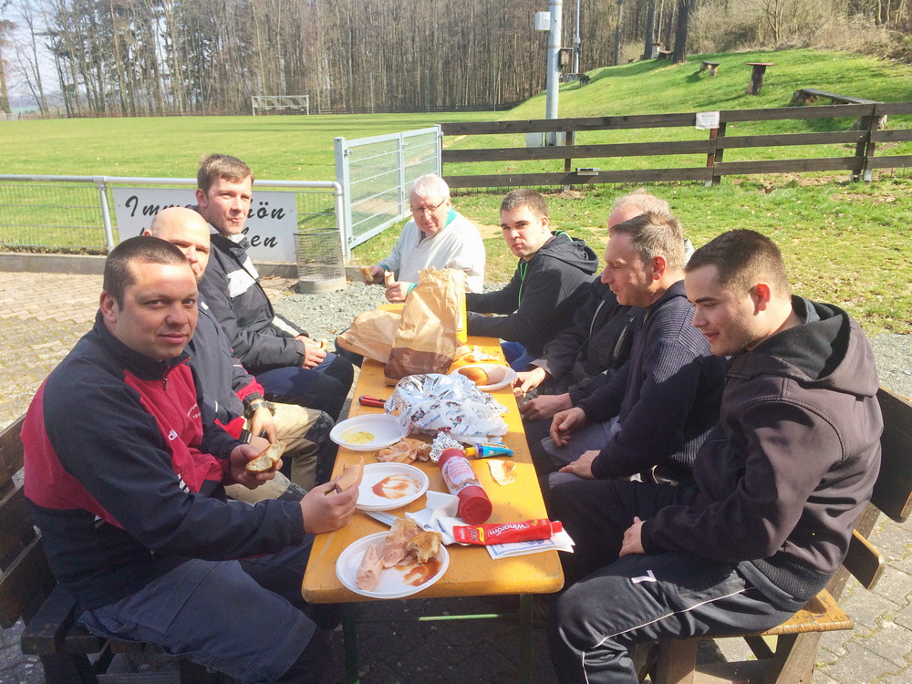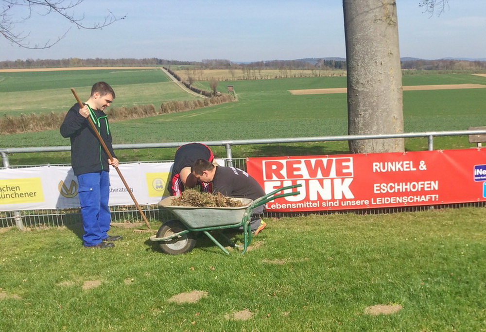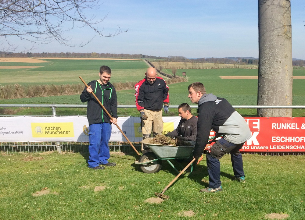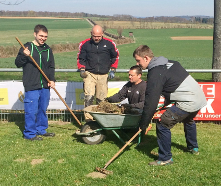 Damit ab Ende April der Spielbetrieb der FSG Gräveneck/ Seelbach/ Falkenbach wieder auf dem Sportplatz an der Friedenseiche stattfinden kann, war ein umfangreicher Arbeitseinsatz notwendig. Von den 19 Helfern wurde das Spielfeld hergerichtet, umfangreiche Mäharbeiten auf der Naturtribüne und an der Falkenbacher Straße ausgeführt, neue Tornetze aufgehängt sowie auf den Parkplätzen und rund ums Sportheim die Reste der Stürme der vergangen Wochen und Monate beseitigt. Der TuS-Vorstand bedankte sich mit einem kräftigen Imbiss bei den Helfern. Besonderen Dank an Tobias Klein für die Vorbereitung und Lukas Hennemann für die Organisation der Helfer. (ghw)